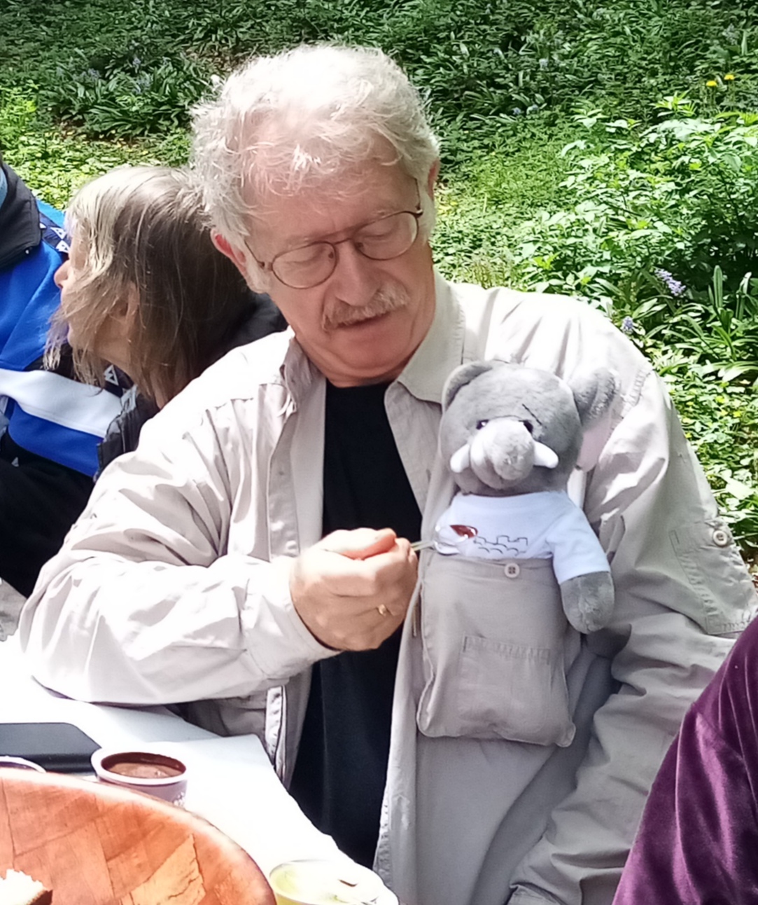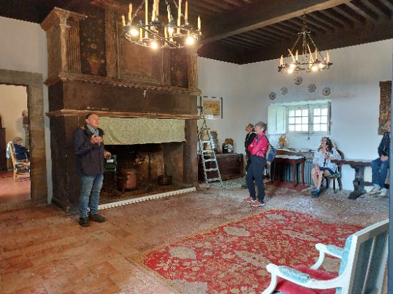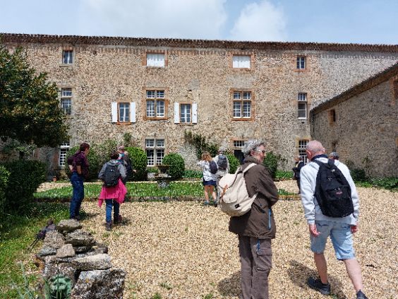 Le rassemblement dans la cour du château autour d’un café de bienvenue a permis un premier contact entre les participants qui se sont vus présenter à la fois le pourquoi de l’appellation « sentier des illustres » pour le chemin dans lequel ils allaient mettre leurs pas et aussi la mascotte qui devait les accompagner.