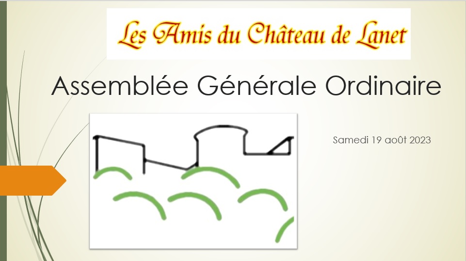 30 des 68 membres actifs que compte l’association étaient présents ou représentés lors de cette seconde assemblée générale de notre association dont l’objet est d’ « agir pour la sauvegarde, l’entretien et la mise en valeur du château de Lanet et du patrimoine architectural et historique qu’il représente, et aussi de rassembler idées, fonds et initiatives dans le but de rénover, de préserver et de mettre en valeur le site ».