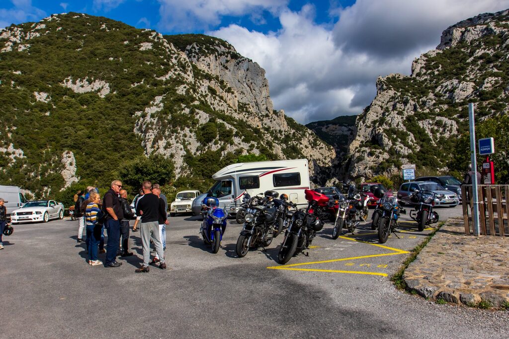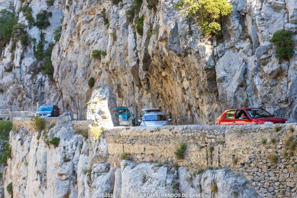 Creusées jusqu’à cinq cent mètres par le flot persévérant de l’Agly, infranchissables jusqu’aux abords du vingtième siècle où l’homme, un peu fou mais tenace et acrobate, a taillé à la barre à mine le passage d’une route.