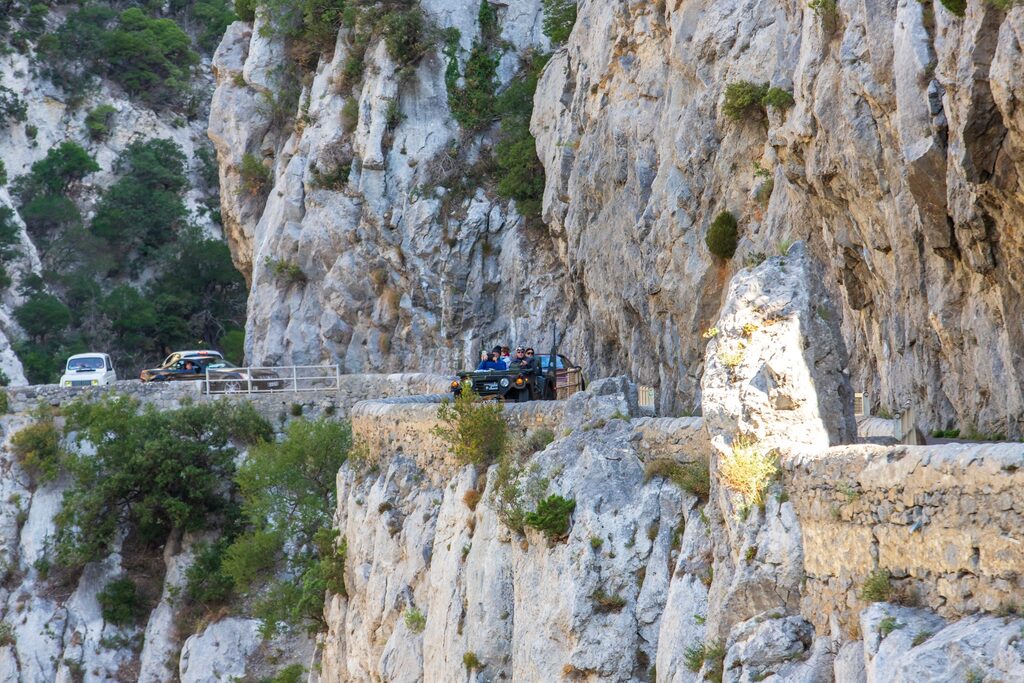 Une route étroite, sinueuse, torturée de rochers immenses.
