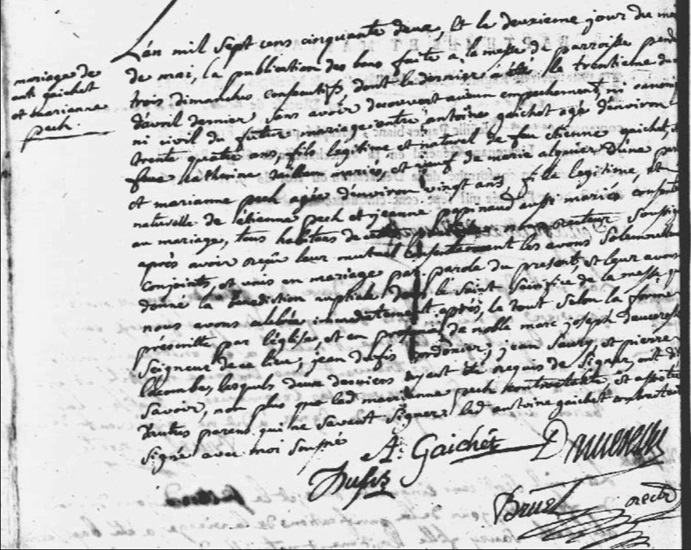 Etienne Gaichet, son père avait épousé en premières noces Jeanne Chauvet décédée en 1707, dont il avait eu quatre enfants.