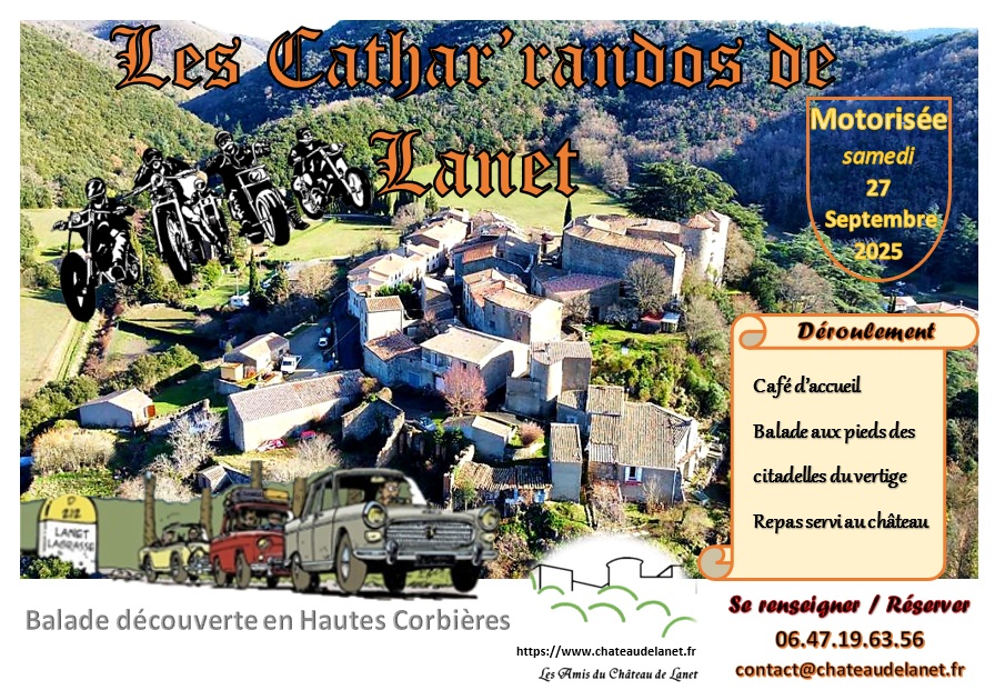 L’arrivée à Lanet est prévue vers 12h30 et comme toujours la balade se termine à pied : les véhicules sont à garer près de l’église et les participants viennent déjeuner au château de Lanet