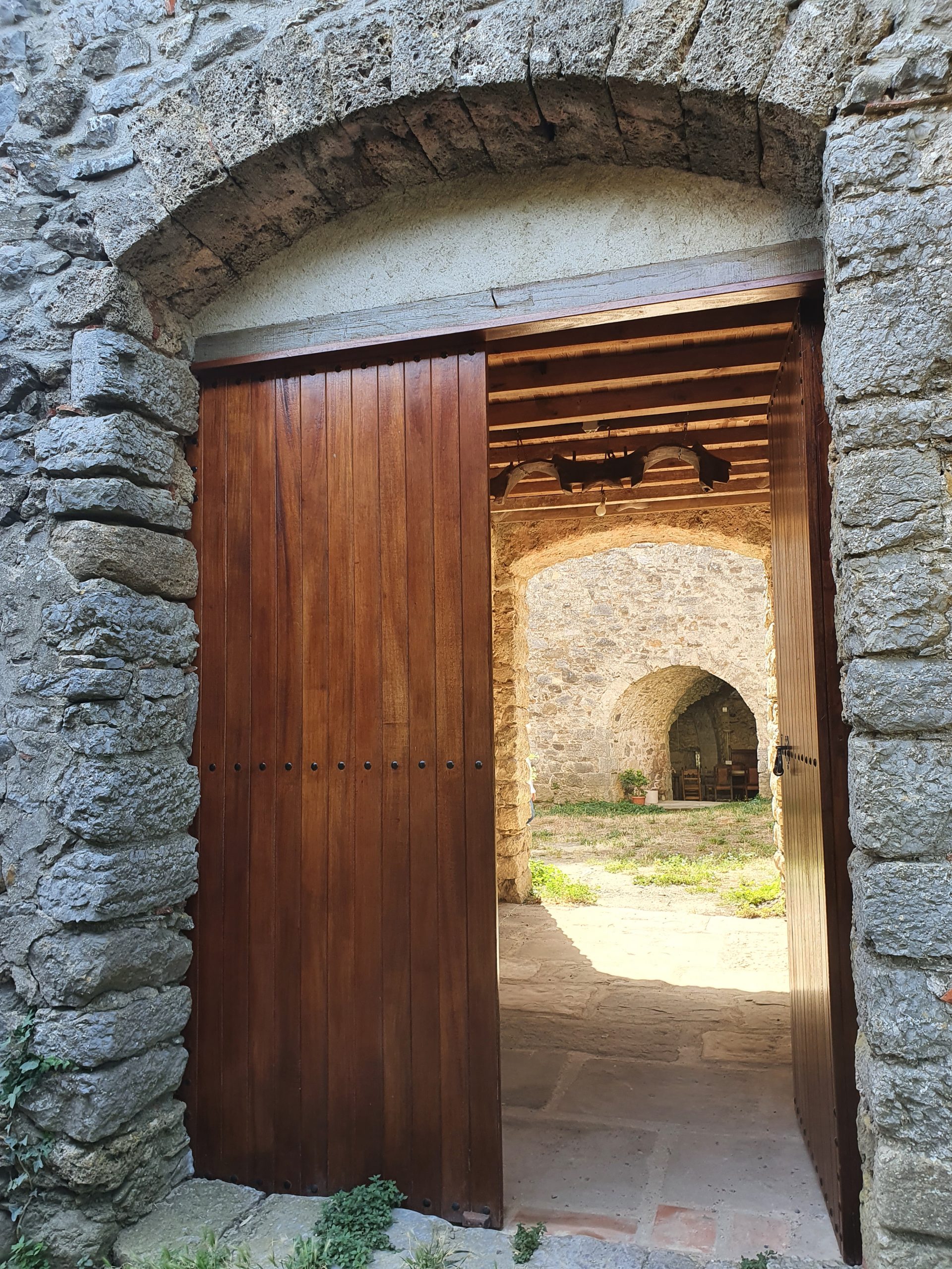 Quant à l’accès au château, il a été réaménagé en gardant tout son cachet : la double volée de marches de pierre, démontées puis reposées une à une, a retrouvé avec l’horizontalité une certaine jeunesse. Au bout de quelques mois à peine, joints patinés et violettes réinstallées dans les interstices…il est comme avant, en plus facile à vivre.
