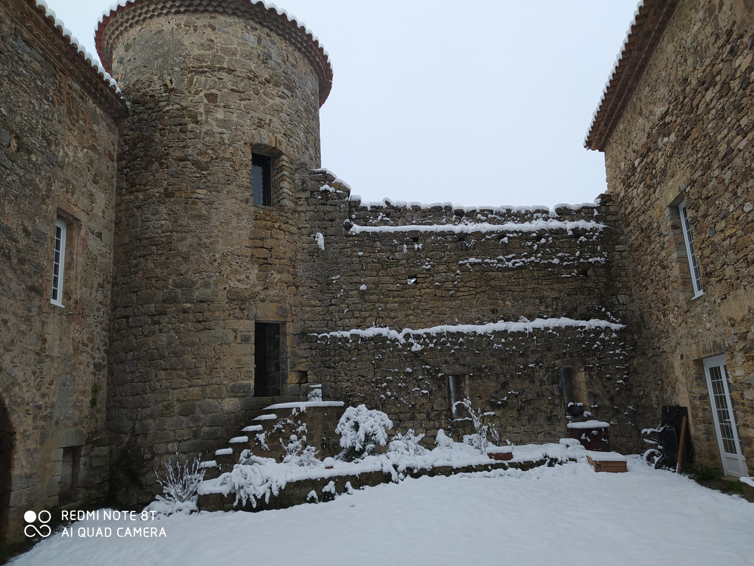 Au commencement le château n’était qu’une tour, la tour carrée mais je vous parle d’un temps que les moins de mille ans ne peuvent pas connaitre… En effet cette tour daterait du XIème siècle (à cent ans près : les permis de construire de l’époque étaient peu précis sur le sujet !). Ancrée sur le rocher qui domine le village elle est aussi imposante qu’aux premiers jours, tant sa quadrature et la rectitude des arêtes sont intacts.